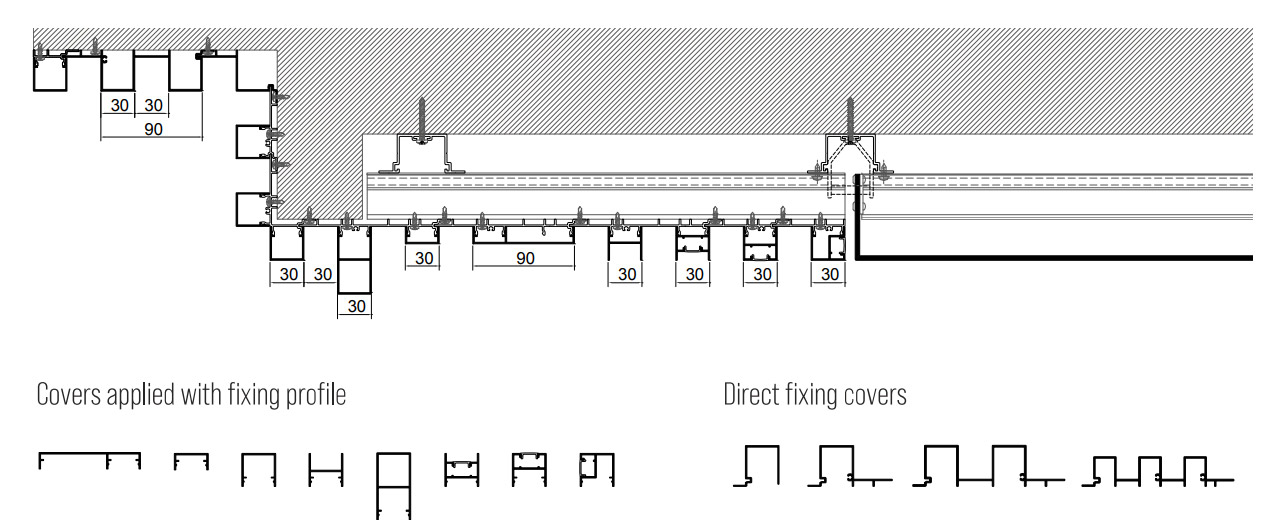 Versatile system for cladding facades, simple and quick to install. Depending on the cover profile to be applied and the finish chosen (lacquered or anodised), the final result features different looks, giving the facades a more traditional or a bolder design. This system was developed to allow the compatibility with the composite panel cladding, thus enabling an infinite number of solutions.